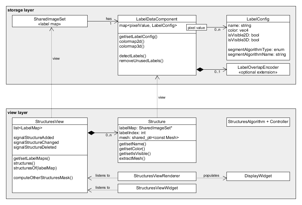 The Segmentation plugin introduces to concept of "Structures" to facilitate working with multiple label maps. This concept is a set of classes that work together as follows: