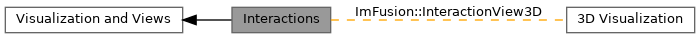 Interaction is the top-most class for handling user interaction with views and overlays. It is the base class for ViewInteraction and OverlayInteraction, and contains methods for creating and evaluating context menus as well as handing user inputs such as mouse events. Each InteractiveView has a ViewInteraction object for handing its interactions, and similarly, every InteractiveOverlay has an OverlayInteraction.